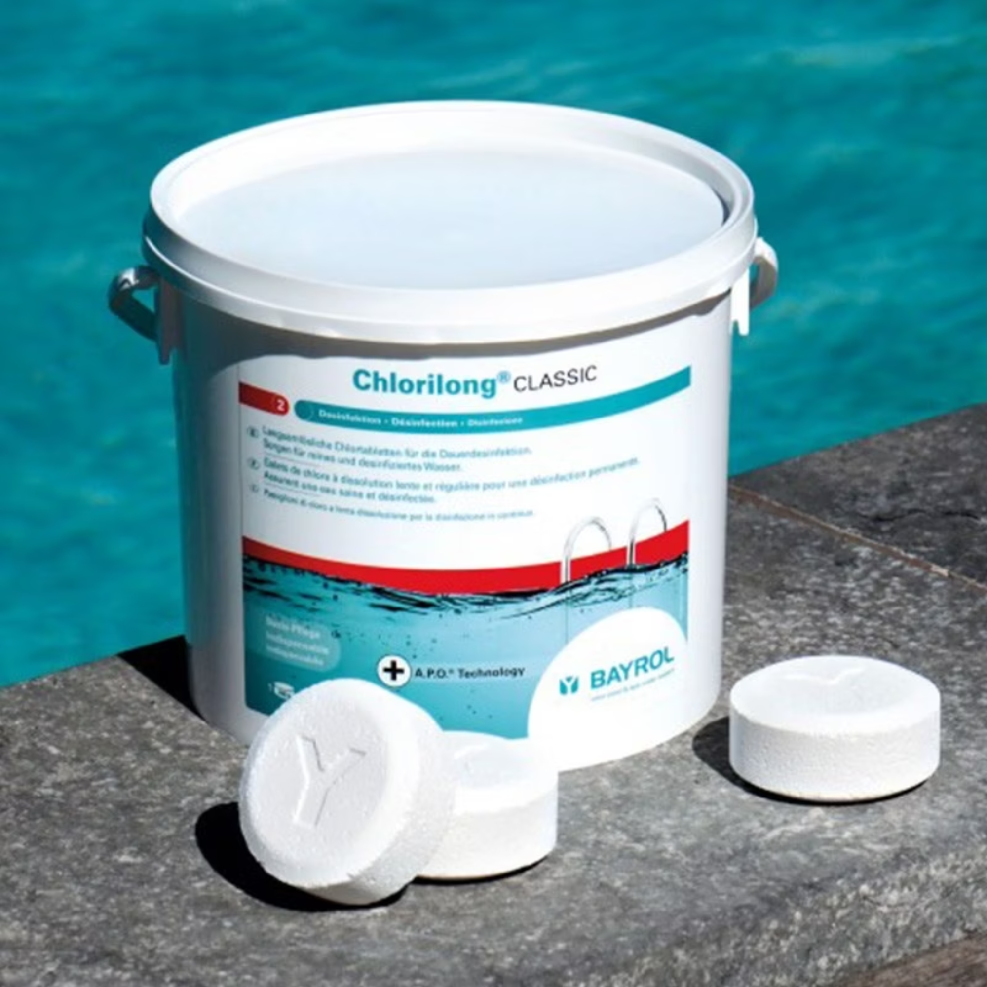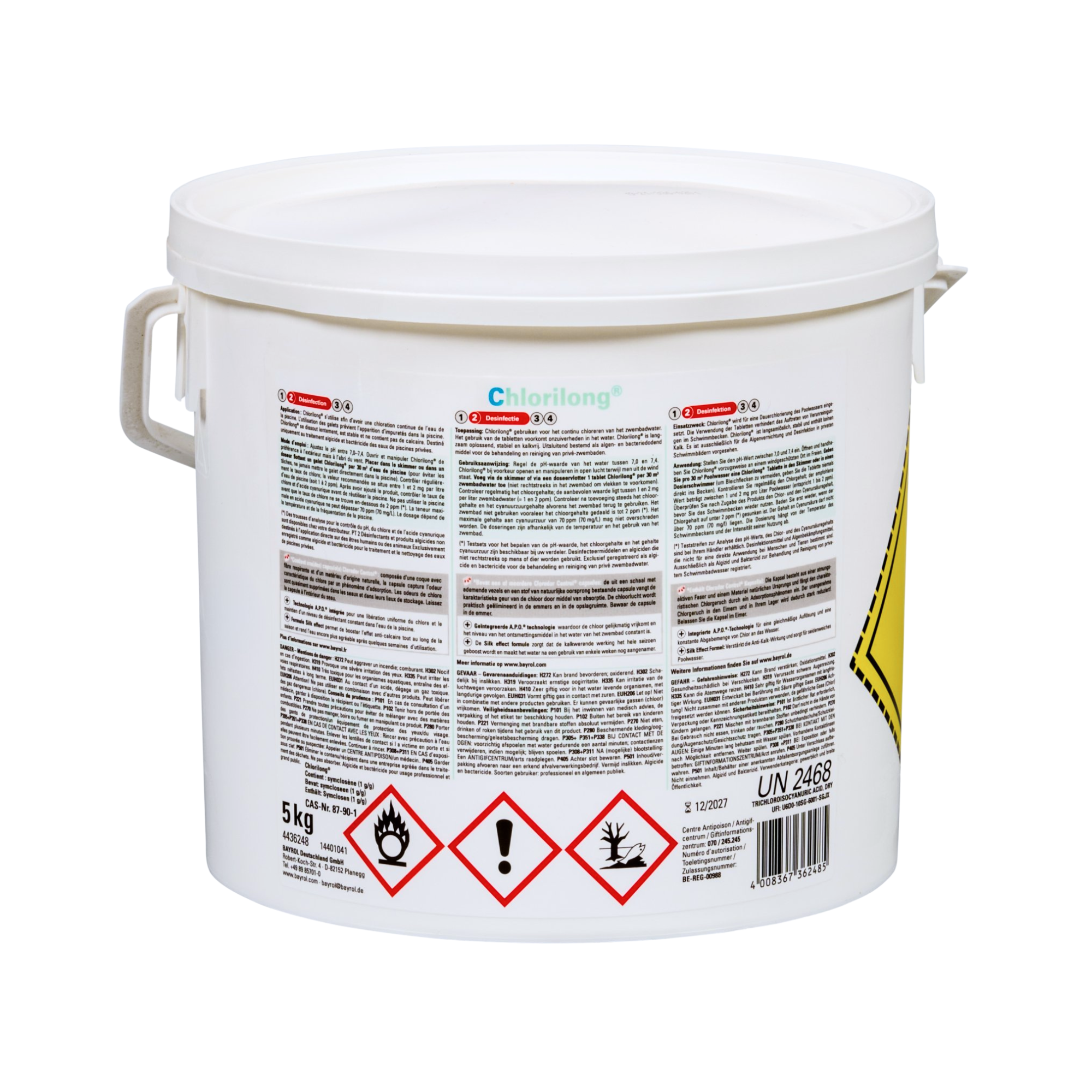 Deze Bayrol Chlorilong 5 kg zwembad chloortabletten zijn langzaam oplossend. Aan de hand van deze chloortabletten kan je het zwembad ontsmetten en vrij maken van algen en bacteriën. Deze tabletten houden de chloorwaarden van uw zwembad op peil.